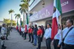 Los Mochis, Ahome, Sinaloa, a 22 de Febrero del 2023.- En el marco de la ceremonia cívica del 110 aniversario luctuoso de Francisco I. Madero, donde autoridades municipales, militares y educativas, realizaron izamiento de Bandera a media Asta en Palacio Municipal, el Alcalde Gerardo Octavio Vargas Landeros abanderó a las 7 sindicaturas ahomenses.