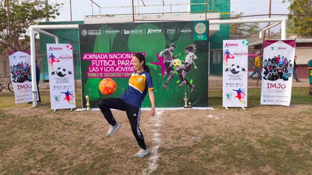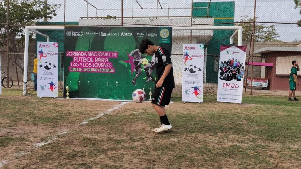 Los Mochis, Ahome, Sinaloa. A 26 de Marzo de 2026.- En un ambiente de entusiasmo, participación juvenil y promoción de estilos de vida saludables, el Ayuntamiento de Ahome se sumó a la Jornada Nacional de Fútbol para las y los Jóvenes “Torneo de Cascaritas y Dominadas”, iniciativa impulsada por el Gobierno de México para fomentar la práctica deportiva y la sana convivencia entre la juventud del país.