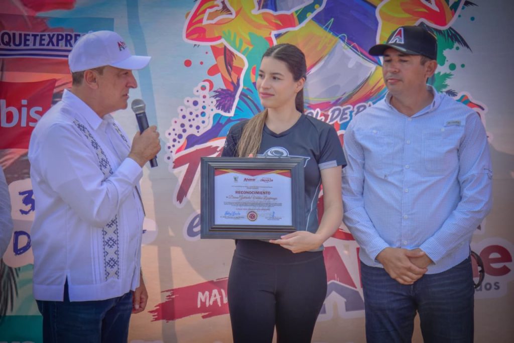 *El Presidente Municipal Antonio Menéndez encabezó el arranque de la competencia, donde se entregó un reconocimiento a Diana Gabriela Valdez Lizárraga por su destacada trayectoria en el deporte…