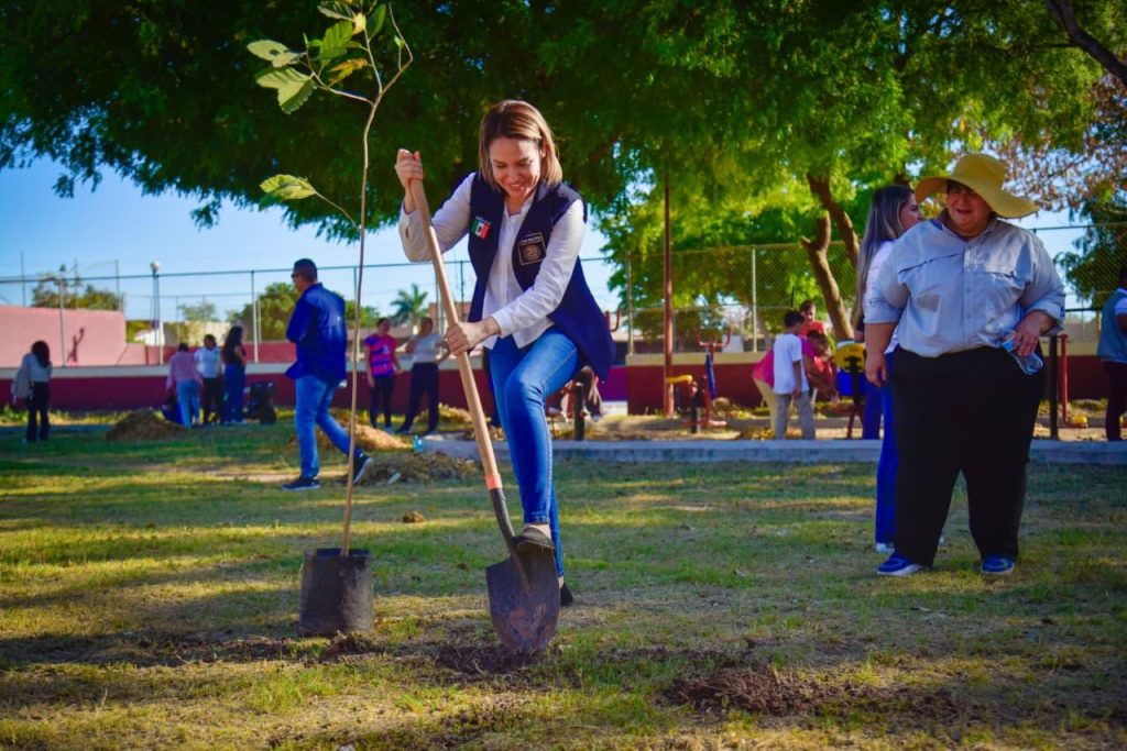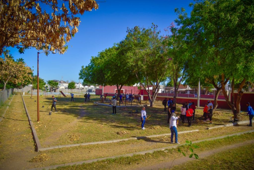 “Aquí estamos muchos funcionarios del equipo del Ayuntamiento de Ahome que encabeza mi padre el Alcalde Antonio Menéndez De Llano Bermúdez, haciendo montón con las familias, y los equipos de DIF, Salud, Educación, Mujeres, Jóvenes, Deporte y más, para ayudarles a limpiar y rehabilitar este espacio, plantando árboles, pintando murales y otras acciones pertinentes para recuperar estas áreas públicas”, expresó Marissa.
