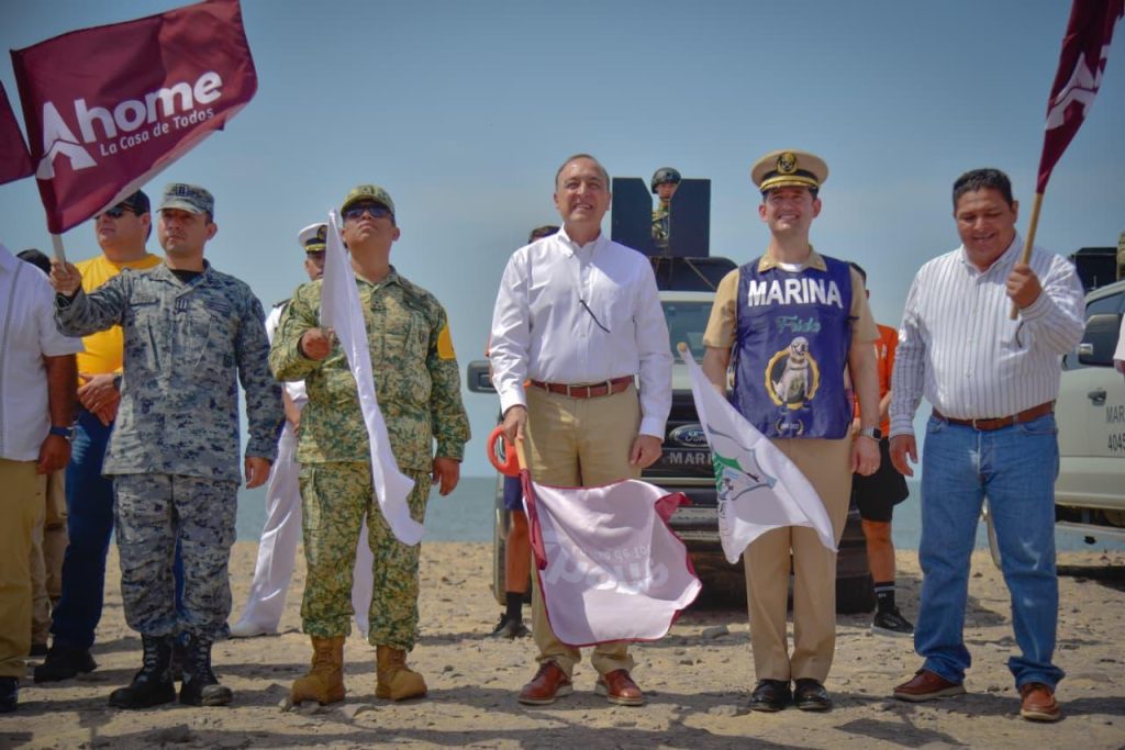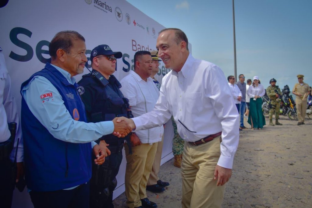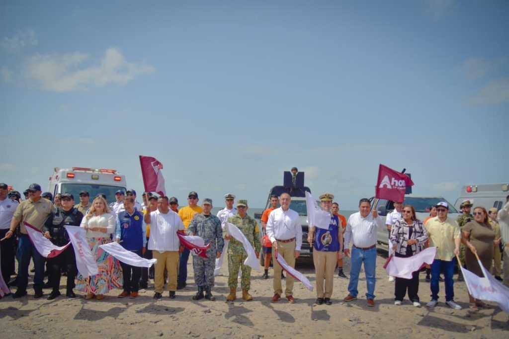 Playa de El Maviri, Ahome, Sinaloa. A 28 de Marzo de 2026.- Desde playa El Maviri, el Presidente Municipal de Ahome, Antonio Menéndez de Llano Bermúdez, encabezó el banderazo de inicio del operativo Semana Santa Segura 2026, mediante el cual autoridades de los tres órdenes de gobierno, Marina, DEFENSA, Guardia Nacional, corporaciones de seguridad y cuerpos de auxilio trabajarán de manera coordinada para proteger a las familias ahomenses y visitantes durante el periodo vacacional.