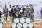 Escuelas distinguidas del Desfile del Día de la Bandera reciben equipos de Banda de Guerra.