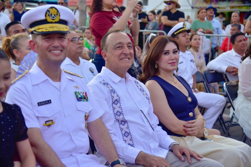 En su mensaje, el Alcalde Antonio Menéndez De Llano Bermúdez, quien estuvo acompañado de su hija Marissa Menéndez De Llano Chávez, Presidenta de DIF Ahome, así como de regidores y funcionarios municipales, sin faltar la presencia de los mandos de las Fuerzas Armadas, que son parte esencial de esta ceremonia que se celebró durante todo el día en el puerto, agradeció en especial a los músicos militares por venir desde lejos a sumarse con los ahomenses en esta especial ceremonia, que disfrutaron cientos de familias en el malecón del puerto de Topolobampo.