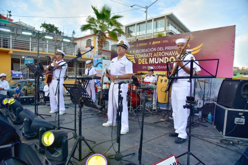 “La Flotilla del Ritmo” y “Grupo Armada” ponen a bailar y cantar a los asistentes a la recreación del 112 Aniversario del 1er. Combate Aeronaval del Mundo en Topolobampo.