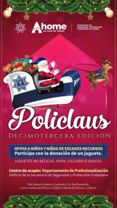 Los Mochis, Ahome, Sinaloa. A 07 de Diciembre de 2025.- La decimotercera edición del Policlaus 2025 se realizará el próximo miércoles 24 de diciembre, iniciativa que año con año encabezan los agentes de la Secretaría de Seguridad y Protección Ciudadana del Municipio de Ahome, para llevar alegría a niñas y niños de colonias y comunidades en situación vulnerable.